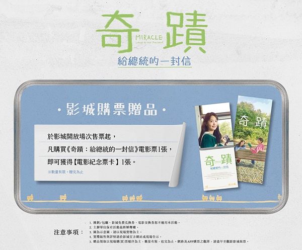 把「女神潤妸」藏起來!《奇蹟:給總統的一封信》影城購票即贈台灣限定電影紀念票卡!