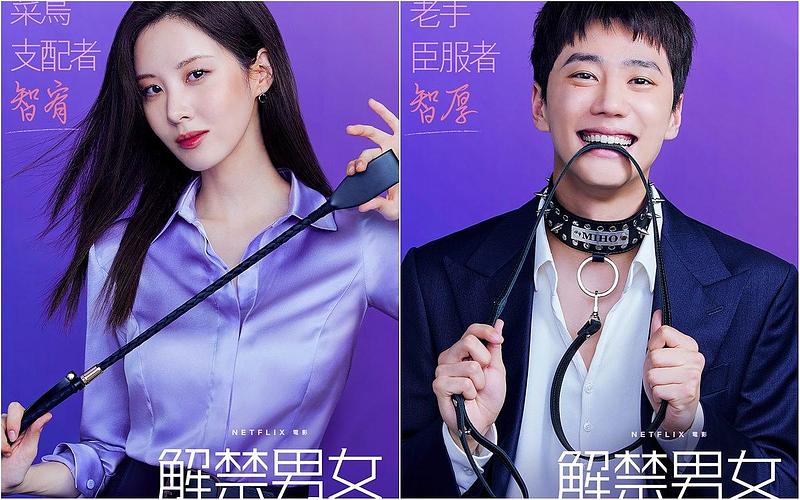 《解禁男女》官方於17號公開前導預告,只見徐玄穿著緊身OL制服,搭配開高叉的迷你短裙以及尖頭細跟高跟鞋,化身超火辣性感的「菜鳥支配者」,戴著眼鏡展現斯文一面的李濬榮則成為了「老手臣服者」,一臉甘願且享受著徐玄對自己展開人體繩縛,而在同時公開的劇照當中也不難發現徐玄和李濬榮看似害羞地一起浪漫散步,但兩人的手腕上卻銬著情趣手銬,另外在個人海報上也看得到徐玄手持打狗調教鞭,而李濬榮的脖子上竟掛著情趣狗鍊,表情還相當開心,「調教」招式樣樣來也讓粉絲們不僅驚訝偶像出身的兩人轉變如此之大,亦迫不及待想知道他們之間究竟會有何種火辣互動!韓影《解禁男女》2/11 (五)下午四點,Netflix全球190個國家獨家同步上線!