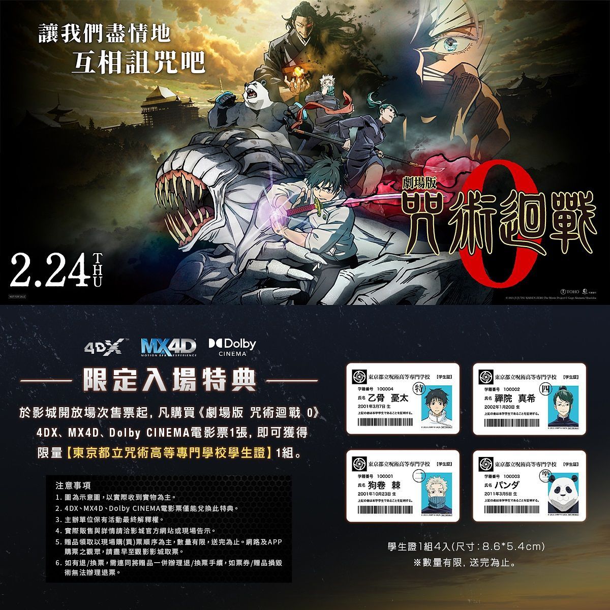4DX / MX4D / Dolby Cinema 版本:東京都立咒術高等專門學校學生證