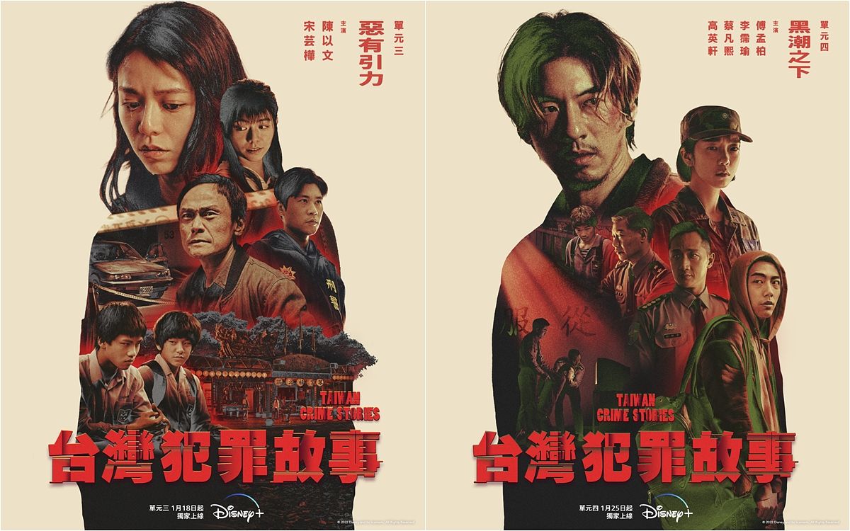 2022年12月5日,台北訊 ── 將於1月4日起上線的Disney+ 原創影集《台灣犯罪故事》,今(5日)發布知名剪接師林雍益操刀的正式預告,搭配設計師吳建龍的四款單元主海報,正式揭露《台灣犯罪故事》中四個單元更多的關鍵人物和情節。《台灣犯罪故事》將於2023年1月4日起獨家上線Disney+,全劇四篇故事〈出軌〉、〈生死困局〉、〈惡有引力〉、〈黑潮之下〉之靈感來源係受台灣真實案件之啟發,於每週三上線一單元3集,全劇共12集。