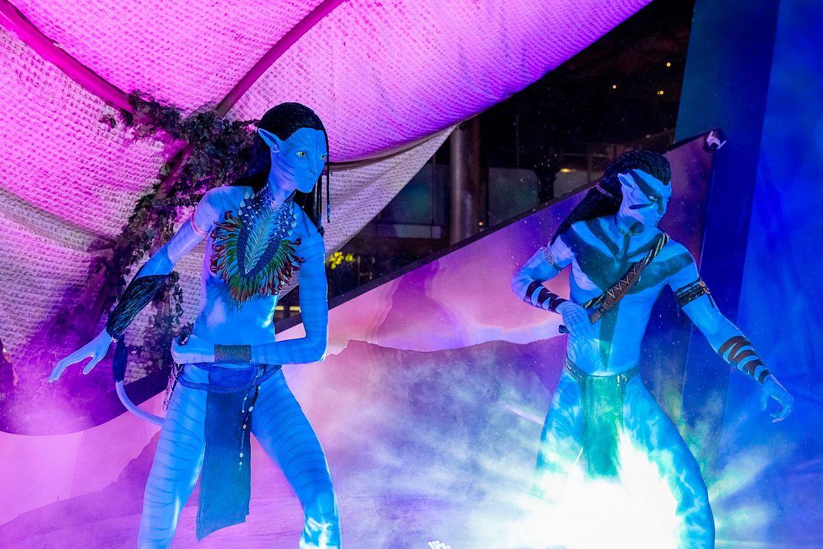繼新加坡濱海灣花園、威尼斯藍色A字水道、高雄輕軌專車後,昨晚《阿凡達:水之道》也於台北市信義區香堤大道廣場展示台灣首度「阿凡達雕像展」,令人一睹獨一無二真人比例的納美人傑克與奈蒂莉樣貌,展覽與電影同步登場,從12月14日起至2023年1月2日止,令觀眾在前往觀影前後,還能和「兩位主角」酷炫合影留念,即將掀起除了電影本身之外的《阿凡達》街頭熱潮!