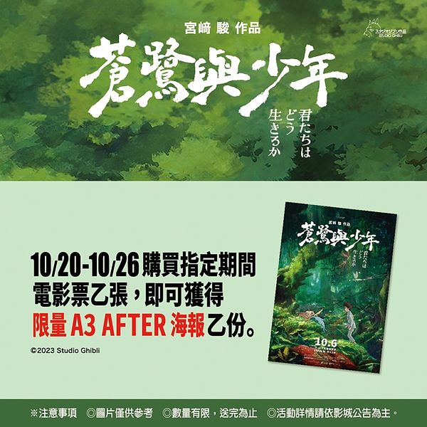 電影上映首日即引起全台觀眾瘋狂推薦口碑洗版,片商及各影城推出的特典也被粉絲爭相收藏,本周五(10/20)將推出第三周特典,為台灣限定版海報「After隱藏版」A3限量雙面海報,《蒼鷺與少年》全台口碑爆棚熱映中!更多資訊請上甲上娛樂官方臉書粉絲團查詢:https://www.facebook.com/applausemovietaiwan/。
