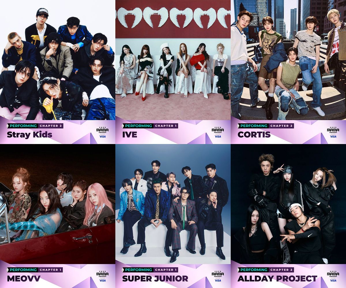 ALPHA DRIVE ONE、BABYMONSTER、BOYNEXTDOOR、BUMSUP、Hearts2Hearts、IVE、MEOVV、SUPER JUNIOR、TWS、ALLDAY PROJECT、CORTIS、izna、RIIZE、Stray Kids、ZEROBASEONE