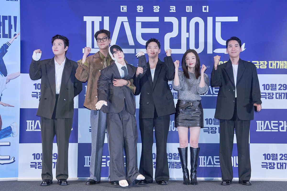 值得一提的是,除了正在服役無法出席的車銀優外,出席記者會的四位主演姜河那、金英光、姜泳錫與韓善化,全都已經超過三十歲,卻仍為角色在片中穿上高中制服。當被問及此事,記者會秒變大型「道歉發表會」,笑果十足!姜河那率先自嘲:「如果畫面裡同時出現真正的高中生,應該會讓人瞬間出戲吧?但因為只有我們,應該還算勉強過關。」他更幽默補充:「真的很抱歉,我知道自己已經過了穿制服的年紀,片中十多歲的部分,會靠妝容營造氛圍,三十多歲就用素顏展現滄桑感,希望大家能看出角色在時間的流逝。」金英光也認真「懺悔」:「穿制服真的感到很抱歉,以後應該不會再挑戰了。」姜泳錫則笑說:「原以為跟哥哥們一起出現的話,我穿制服應該還能像高中生,結果不是這麼回事…我也是來道歉的。」唯一的女主角韓善化則笑稱:「導演跟我說有瀏海會更像高中生,所以我就貼了瀏海、穿上制服。」