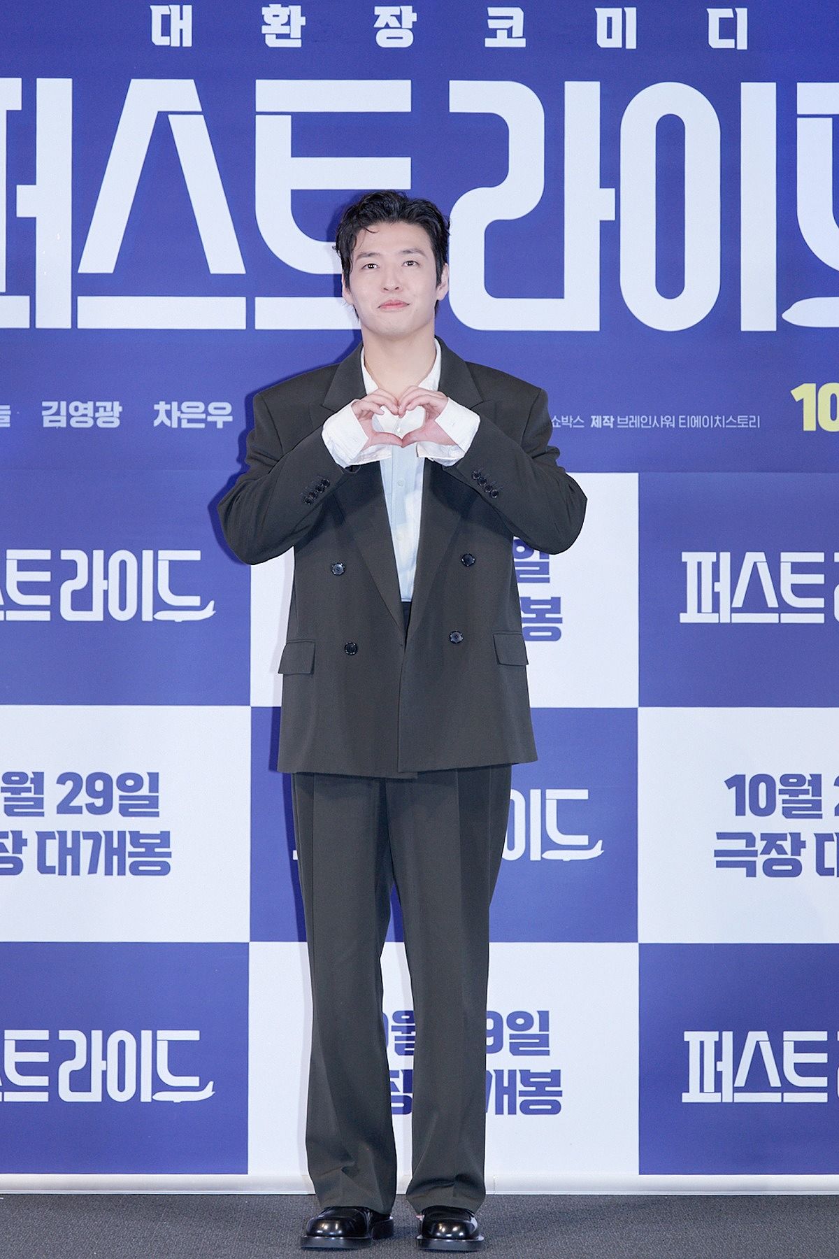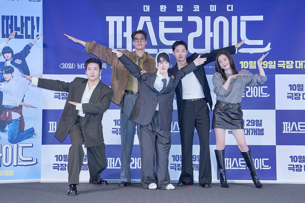 南韓「臉蛋天才」車銀優不閃兵,在人氣正夯時毅然入伍,於今年 7 月低調報到,讓全球粉絲相當不捨!不過,就算身披軍裝,他仍貼心為粉絲留下溫暖驚喜,讓主演新片《放飛旅行團》成為他入伍前獻給粉絲的「最後禮物」。適逢電影即將上映,劇組昨(22 日)於首爾舉辦媒體試映記者會,雖然車銀優本人無法出席,但劇組驚喜搬出他的等身人型抱枕,與導演南大中及四位主演姜河那、金英光、姜泳錫與韓善化(又譯韓善伙)同框站台,畫面又萌又搞笑;眾人並隔空喊話,傳遞對他的思念之情。讓人會心一笑的是,片中幾位主演集體「降齡」演高中生,儘管除了車銀優外,其他人的年紀都早已超過三十歲,卻仍在片中換上制服青春登場。面對媒體提問,他們也不好意思地笑稱:「真的很抱歉!」瞬間讓現場變成另類「道歉發表會」,氣氛輕鬆又有愛。《放飛旅行團》即將在 11 月 14 日於台灣歡樂獻映。