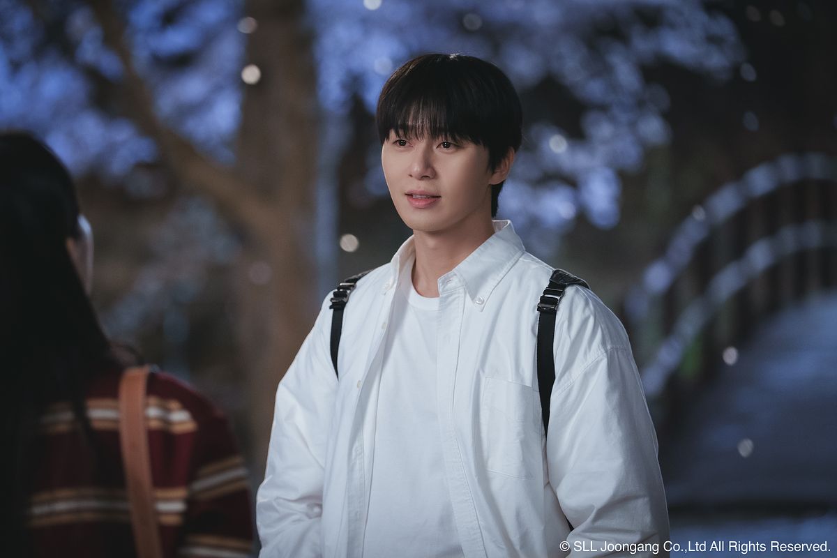 首波預告率先公開兩人「不平凡的初戀」,畫面重回 20 歲的春天,粉色氛圍與唯美構圖充滿青春氣息。兩人肩並肩在公車裡共用耳機聽音樂,然而氣氛浪漫正濃時,徐智友突然拋出一句:「我們要睡一起嗎?」讓李京道瞬間慌了神。醉酒後的她還直接撫摸對方頭髮,坦率直球:「我們不是差點一起睡的關係嗎?」甚至口出狂語,讓李京道又氣又慌。多年後的第三次重逢,她更主動要求:「我的離婚新聞就由你來寫吧!」李京道無奈抱怨:「她就不能安靜過日子嗎?」但即使朋友勸他放下,仍忍不住幫她辯護:「她其實人很好。」舊愛糾葛與命運羈絆,讓人好奇兩人將走向何方。