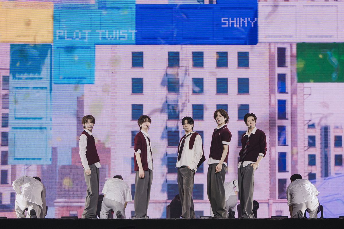 演出由開場曲〈Oh Mymy : 7s〉震撼揭幕,隨後接連帶來〈Freestyle〉、〈Double Take〉與成名曲〈plot twist〉,瞬間點燃全場高能量氣氛,讓現場尖叫聲此起彼落。中段更以俐落帥氣的舞臺風格,演唱〈Lucky to be loved〉、〈마지막 축제 (最後的慶典)〉與〈Comma,〉等曲目,不止展現充滿力量又整齊劃一的「刀群舞」實力,也展現成員們穩定且成熟的唱跳實力。尤其唱到〈hey!hey!〉、〈If I’m S, Can You Be My N?〉時,粉絲的應援聲響徹海音館,更與舞臺旋律完美契合。