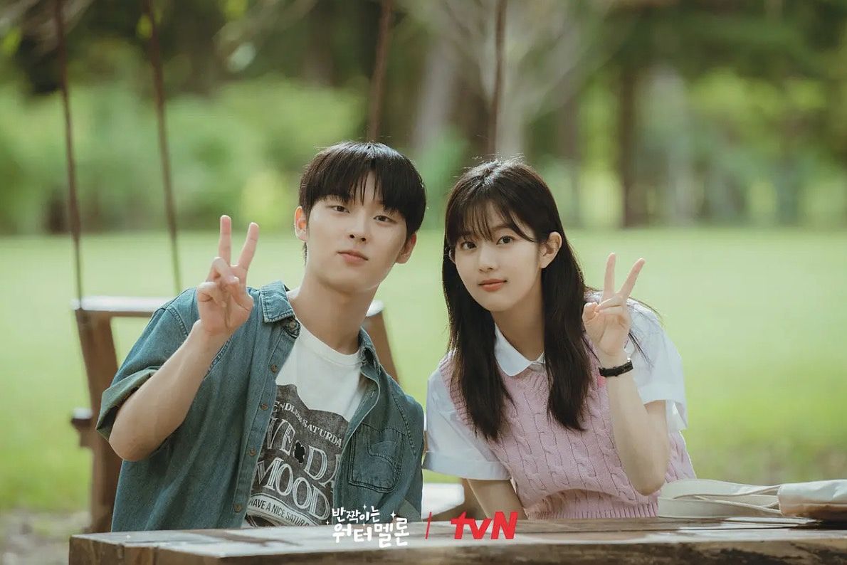2023 年 9 月 25 日播出的《閃亮的西瓜》,由厲雲、崔顯旭、薛仁雅與申銀秀主演,劇情講述一名擁有音樂天賦的少年「河恩傑」,意外穿越回 1995 年,與年輕時的父母相遇,並組成樂團「Watermelon Sugar」,展開一段關於青春、親情與夢想的故事。乍看劇名可能會一頭霧水,「西瓜」是尹清雅喜歡的畫家芙烈達卡蘿的畫作《Viva la Vida》,而「閃亮的」除了閃亮之意,在手語的手勢中還有「鼓掌」的意思,且韓文「鼓掌」(박수)反過來唸就是「西瓜」(수박),劇名和劇情其實環環相扣。