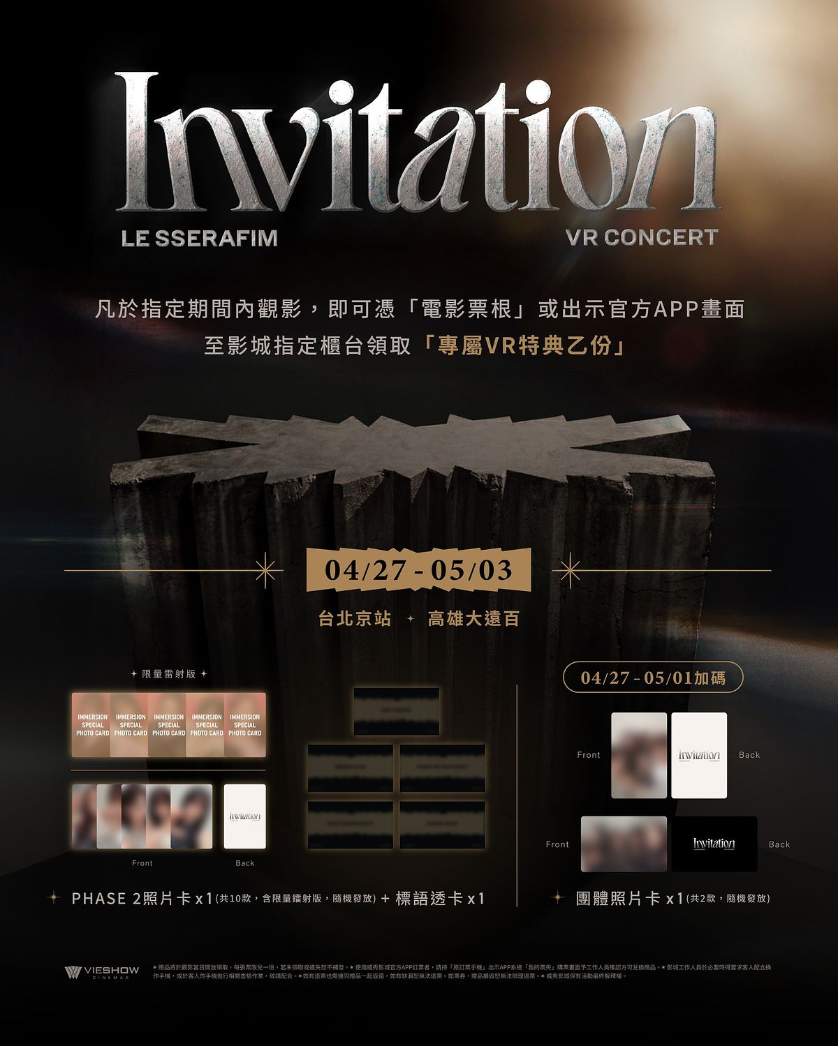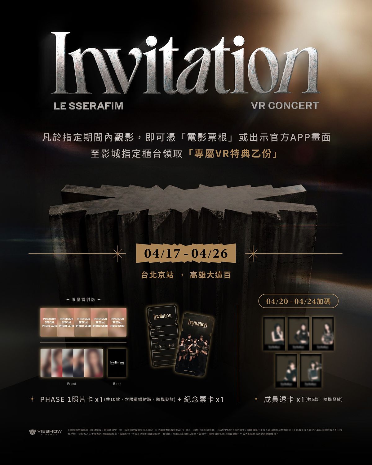 FEARNOT 們準備好了嗎?LE SSERAFIM 的首部 VR 演唱會電影《LE SSERAFIM VR CONCERT : INVITATION》,將於 4/17(五)在台灣上映啦!《INVITATION》以「現實與幻想交錯」的世界觀為主軸,電梯門打開的瞬間,將與 LE SSERAFIM 置身同一空間。但是就在目光交會的瞬間,成員們消失了,只留下一張神秘的「卡片」,透過這張卡片,LE SSERAFIM 將與 FEARNOT 展開一場異世界旅程!