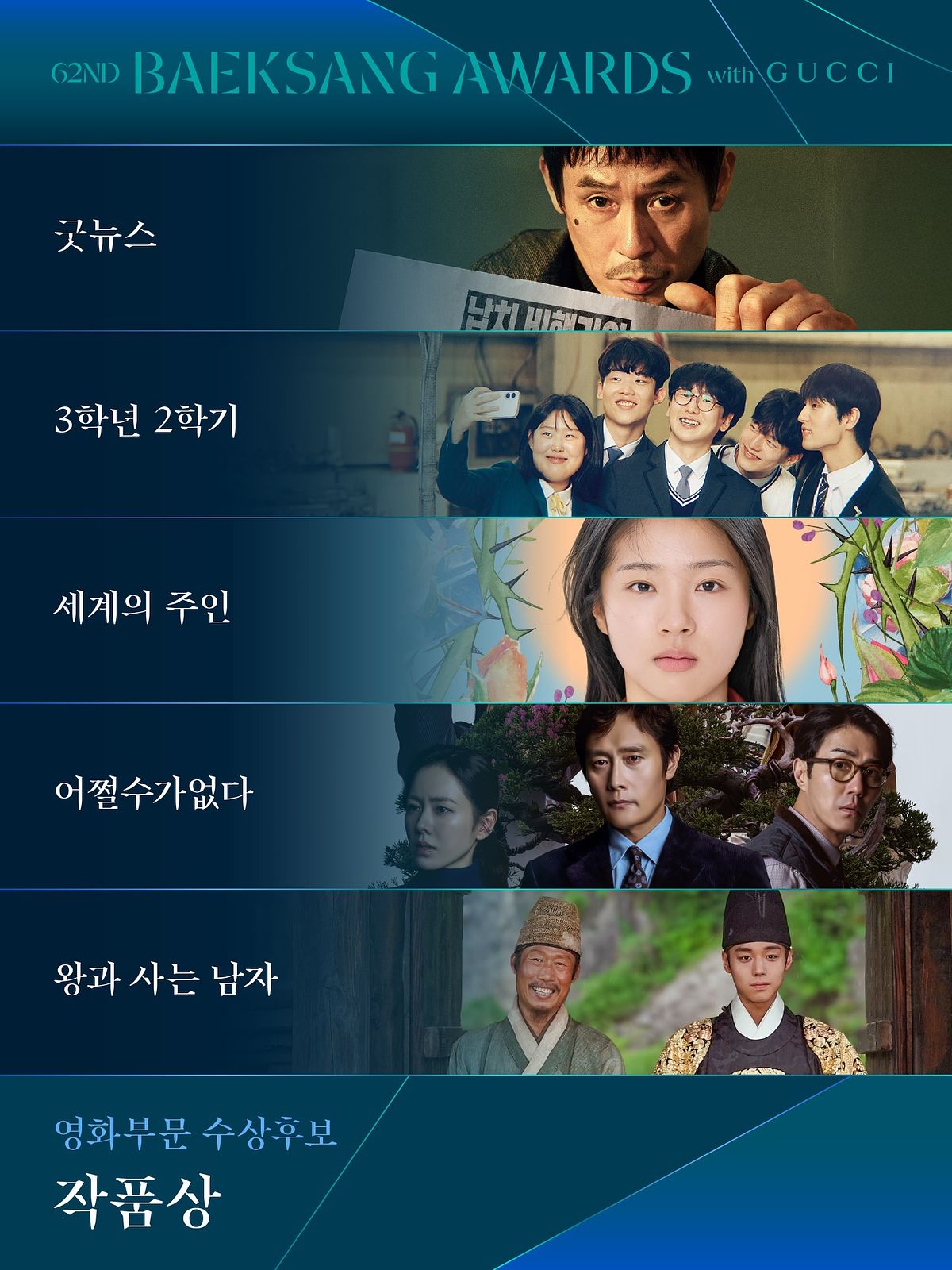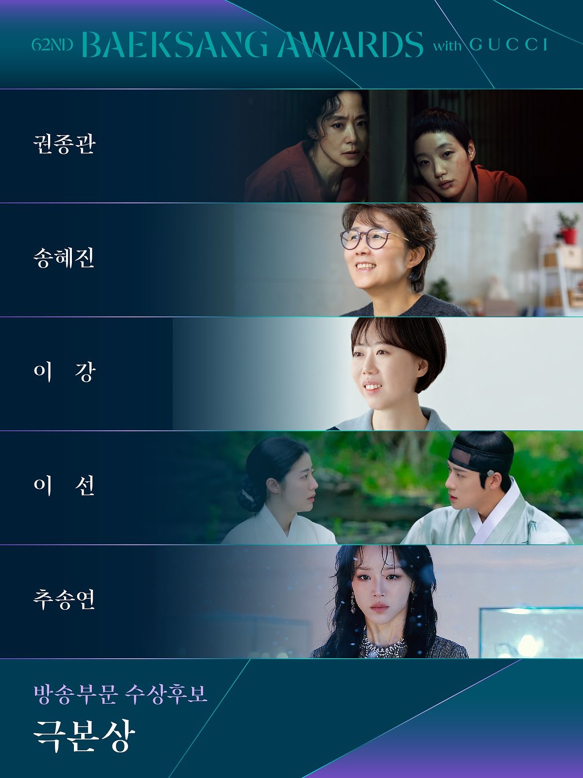 韓國每年最受矚目的影視大獎之一「百想藝術大賞」,今年將於 5 月 8 日在首爾 COEX D Hall 舉行,主持人將繼續由「百想 MC 三人組」申東燁、秀智、朴寶劍擔任。而近日 2026 年百想藝術大賞各獎項的入圍名單也公布啦!在電視部門的「最佳女主角獎」堪稱「神仙打架」的死亡之組,而由金高銀和朴智賢主演的《妳和其餘的一切》則入圍最多獎項,有望成最大贏家,以下就帶大家一起看看這次百想藝術大賞的完整入圍名單。