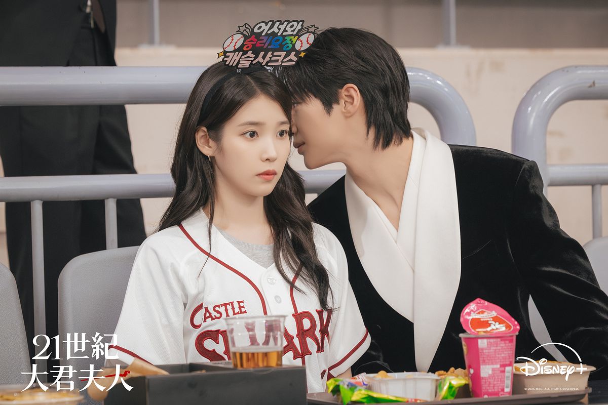 劇中為了讓狗仔拍到畫面以獲取大眾信任,兩人在皇室私邸外刻意上演曖昧的「隔牆吻」,成功引爆全網熱議。但這場浪漫唯美的戲,幕後卻藏著超級爆笑的烏龍。在 Disney+ 釋出的幕後花絮中,IU 透露因為拍攝時間太長,肚子餓的她忍不住隔著牆問工作人員:「今天的宵夜是什麼啊?」沒想到牆另一頭的邊佑錫突然代答:「米漢堡(밥버거)!」但 IU 卻聽錯成發音相似的「很忙(바빠)」,當場嚇出一身冷汗,心想:「天啊,現在大家都在忙,我還問宵夜的事,真對不起!」事後解開誤會時,邊佑錫在一旁崩潰大笑。這個幽默的小插曲,也讓兩人的好感情展露無遺。