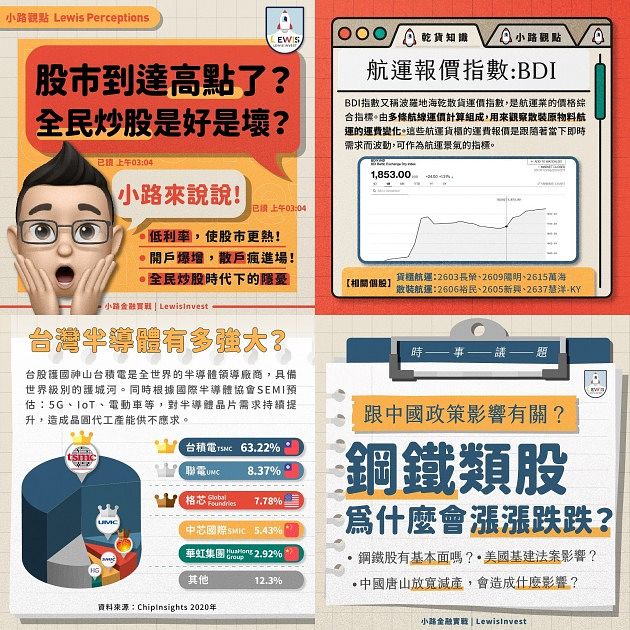 小路金融實戰緊抓住現在最熱門的議題,以及新手心中最常浮現的疑問,藉由問答解說以更淺顯易懂的方式說明,還有大量的圖表式說明,投資小白終於不會總是聽不懂股市分析了!希望讓大家都能在控制風險下,又能追求合理的報酬!