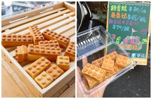 這間雞蛋糕可以說是近期討論度極高的雞蛋糕小餐車,外表是可愛的樂高積木,口感更是酥脆兼具奶香味十足,會讓人一口接著口停不下來的好滋味,是個內外兼具的美味小點阿!