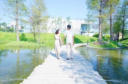 整個園區非常舒適,真的是與大自然共生的感覺,漫步在草地群樹間的步道上,旁邊的落雨松與水池相搭配給人愜意的感覺,而且晚上還會開燈,多增添了一些浪漫的氣氛,實在很適合女孩們揪男友來約會~