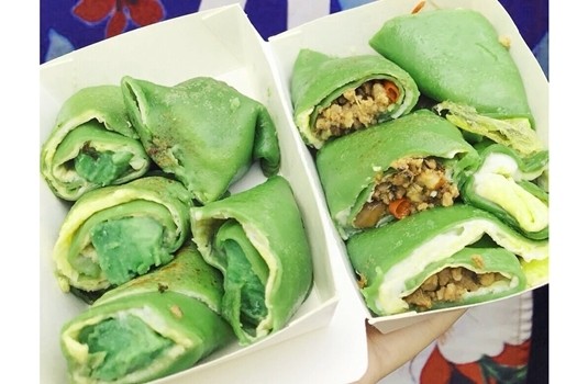 抹茶麻糬蛋餅的綠色外皮,薄脆帶點Q度,內餡包覆著超厚Q彈的麻糬,內餡又分成三種口味,鮮奶麻糬、黑糖鮮奶麻糬、抹茶麻糬,讓女孩可以選擇自己的喜好去挑選。