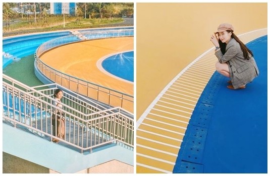 LOOKin打卡爆讚點:就是衝著這顏色太美!「漸層藍階梯、對比色操場」最完美背景,好拍到手機沒電!
