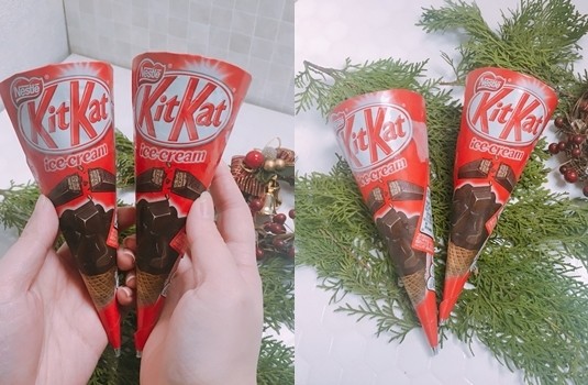 一口咬下去,香濃巧克力冰淇淋搭配巧克力醬,裡頭竟然包覆了一整條經典KitKat巧克力,裡頭裹著酥脆的威化餅乾,多層豐富口感讓人一口一口停不下來,整支用料實在,吃得到滿滿KitKat,巧克力控的女孩千萬不能錯過阿!