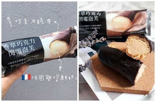 而這款甜點是以冷凍方式保存販賣,因此內餡呈現的是冰淇淋的口感,非常特別又令人驚豔,與微苦的巧克力脆皮搭配,整體的甜度十分剛好,不會太過甜膩,搭配鬆軟的泡芙餅皮,口感很豐富呢!雖然有不少人不喜愛冰過的泡芙餅皮,但內餡及整體風味可是超多人大推,有興趣的人可以快去全家的「冷凍冰櫃」找找,記住是跟冰棒放在同個地方喔!