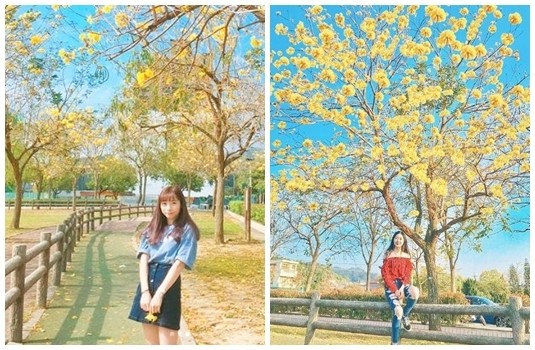 防汛道兩旁盛開茂密的黃花風鈴木,將整個道路渲染成金黃隧道,非常浪漫又美麗,漫步在這完全是一大享受,能完整的感受春天的氛圍~尤其當陽光灑落在這片金黃花海時,真的美到無法呼吸!很值得女孩們快點衝來賞花拍照喔!