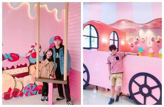 門外一小角設立了神夢幻的盪鞦韆,背景是層層疊疊的甜點,有棒棒糖、拐杖糖、草莓蛋糕等等,有一種走入童話故事裡的錯覺阿~是不是又甜又可愛啊~