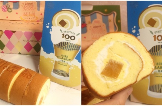 取自日本的蛋糕捲技術並加以改良,接著選用日本、法國的鮮奶油加以混合、調配成最順口且濃郁的黃金比例,蛋糕體則是添入了台灣小農的蜂蜜,混入少許台啤製成了蓬鬆綿密的海綿蛋糕,而最為特別的,就屬蛋糕捲中間的啤酒凍了!