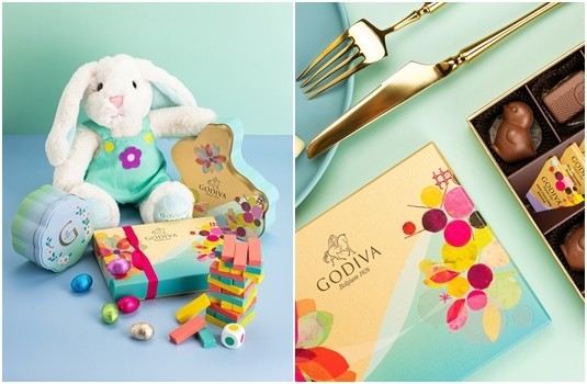 以流線線條與多彩絢爛禮盒設計,呈現繁花盛開帶來的絢麗景象,禮盒內包含復活節限定的小雞形狀及GODIVA經典巧克力款式。
