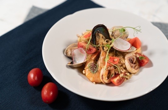 招牌綠洲赤道飯 以薑黃飯搭配嫩雞胸、溫泉蛋與炒野菇等新鮮時蔬,淋上主廚特製的南洋沾醬,在天然食材最原始的口感上獲得滿分的營養;風味濃厚的叻沙海鮮義大利麵,以自製叻沙醬帶出阿根廷大白蝦的鮮甜,經典新加坡風味與義式麵條碰撞出新鮮絕妙滋味!