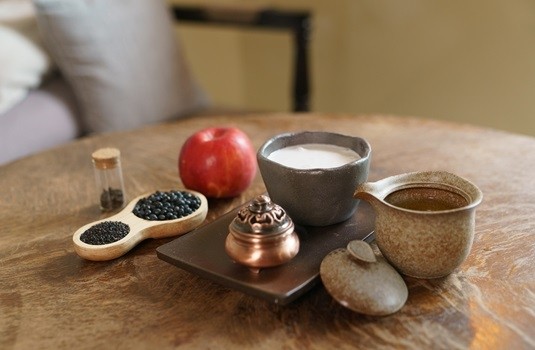 羅馬神話中的維納斯對應到希臘神話中的阿芙蘿黛蒂,兩位不僅是司掌愛情的女神,更是調茶師的靈感謬思,一如歷經坎坷情路、遍嚐忌妒猜忌,仍然奮力追求自由戀愛的維納斯,希臘—自由的愛以仕女伯爵茶為基底,清淡優雅的柑橘香,拌入自製優酪乳,顛覆過往對奶茶的濃郁想像,創造前所未有清爽口感;此外,杯緣襯以貝殼盛裝著起司優格雪糕及醃製橄欖,最後點綴以煙燻泡泡,飲用前將泡泡戳破,空氣中瀰漫著濃烈的香氣,搭配酸甜的雪糕與微鹹橄欖,象徵維納斯的誕生,更像極了自由的愛情,微甜、微酸、微苦,卻懾人心魂、令人無法自拔的滋味。