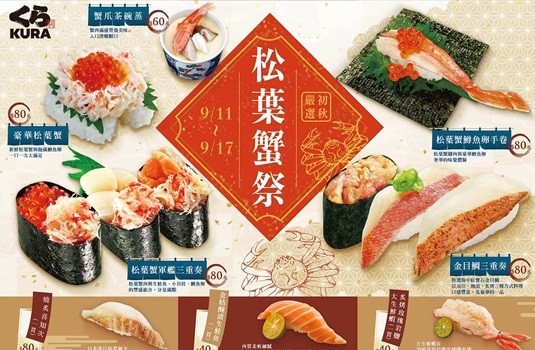 藏壽司首度祭出全台初秋慶典「松葉蟹祭」,於全台門市同步推出8款秋日限定料理,不僅嚴選安全美味的日式餐點,更提供舒適有趣的用餐體驗,與來店顧客一同享受秋季肥美的海洋盛宴。