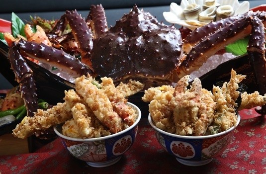 金子半之助嚴選智利進口頂級帝王蟹,蜿蜒曲折的智利南部海岸,非常適合帝王蟹的生長。屬於深海蟹類的帝王蟹多生長於深至300米,年均溫2-5℃的純凈海域,光是要長到可食用的成蟹,至少需要等待8-12年,足見其珍貴稀缺。碩大肥美的蟹腿肉,因生凍處理使得其肉質扎實彈牙、絲絲入扣。而為了使老饕們方便食用,每日由職人炸手們一隻隻分解開殼,搭配金子半之助的經典美味,長達30公分的穴子魚,再搭配上經典的鳳尾蝦、干貝及魷魚海鮮炸、青龍、半熟玉子、海苔,及淋上秘傳百年的江戶前醬汁,要給饕客們沒有極限的美味饗宴!單點價只要999元,升級套餐優惠價只要1079元(原價1750元,相當於打61折,含一杯特調氣泡飲)。同時也推出鱈場蟹天丼,選用生長於潔淨的鄂霍次克海的頂級鱈場蟹,單點價只要760元,升級套餐優惠價只要840元(原價1350元,相當於打62折,含一杯特調氣泡飲)。兩款新品自9月16日於微風北車店、新光A8店限定推出,熱愛金子半之助的台北粉絲們可以準備出發朝聖啦!