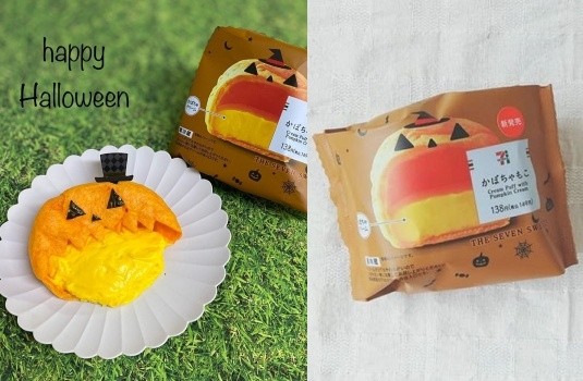 上週才剛推出的南瓜泡芙「かぼちゃもこ」,是每年秋天日本7-ELEVEN 的定番限定甜點,在外包裝的設計上也應景地做了萬聖節的設計,壞壞得很可愛!