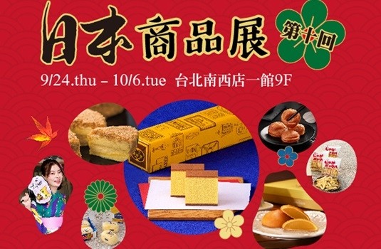 期間限定!新光三越台北南西店週年慶特別鉅獻『第十回日本商品展』隆重登場,9/24(四)-10/6(二)於新光三越台北南西店一館9F活動會館盛大登場!網羅近40家日本人氣名物,包括:首登場的四大超人氣伴手禮、超道地庶民小吃、日系人氣Can Do快閃、御宅族絕不錯過一番賞、居酒屋微醺滋味、師傅匠心工藝、道地和風名物、泡麵大賞、新潟夯特產等,更不可錯過山形花笠舞、沖繩太鼓舞、魚博鮪魚秀及浴衣伴遊體驗即將來台北南西店,讓大家好吃又好玩!此次要提供給消費者最豐富且最多元的商品新選擇,史上最強的日本商品展就在新光三越台北南西店首發登場!