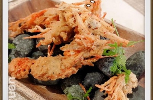 首先、先來分享可以大家分食的小食,因為這邊的海鮮非常新鮮,所以生食也OK喔!這道酥炸蝦頭可妙了,不浪費任何新鮮的食材真的很棒!而且蝦殼整個炸得酥脆喀哩喀哩的超好吃!
