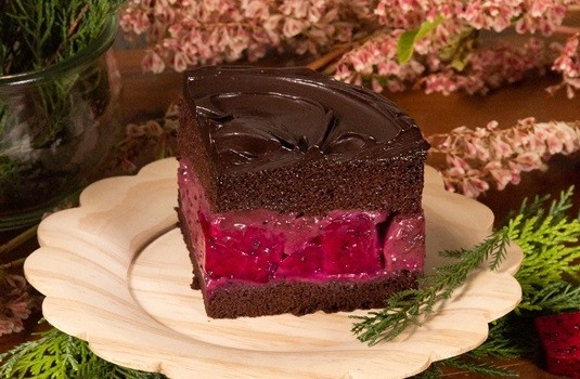 由甜點職人巧手將BAC經典生巧克力餡及鬆軟巧克力戚風結合綜合野莓及新鮮水果,打造的莓果巧克力蛋糕。
