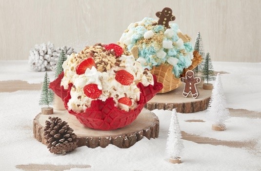 叮叮噹~叮叮噹~時序進入聖誕佳節,消費者對於冰淇淋口味的喜好,逐漸偏向香醇濃郁。為滿足消費者需求,COLD STONE今年特別顛覆以往,以「爆濃系」結合「聖誕氛圍」為概念發想,自11月6日(五)推出2款新品,首推「榛愛幸福」經典冰淇淋,嚴選100%歐洲榛果以炭燒技術製成,為榛果味蕾極致濃郁的秘訣,特別拌入草莓、鮮奶油呈現絲滑口感,微酸甜果香更提升多層次風味,最後撒上烤杏仁,完美創造榛果草莓派的誘人魅力。此外,單週銷售破萬杯的高人氣藍色棉花糖冰淇淋強勢回歸,「藍色狂想曲」經典冰淇淋以冰天雪地為發想,拌入派皮餅乾、小麻糬,為歡慶聖誕佳節特別妝點薑餅人造型的牛奶巧克力片,讓吃冰也有滿滿的節令氛圍,此外為掌握聖誕節慶商機並強化視覺效果,首度以乘載大家願望的紅色「聖誕襪」為發想概念,以紅絲絨巧克力推限量「耶誕紅脆餅」、「耶誕紅甜筒雙球冰淇淋」,滿足求新求變的消費者,充滿巧思的新品將霸佔您的視覺與味蕾,顛覆聖誕冰品想像,必引起新一波話題討論。