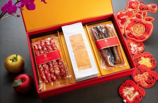 台北君悅酒店「Baguette 禮品‧烘焙坊」即日起至2021年2月16日推出五星外帶年菜預購,精選年節禮盒、功夫湯品、限量甜品及手工糕點,1月18日前預購外帶湯品或禮盒還能享早鳥88折!這暖迎春納福年節禮盒包含了長輩最愛的臘肉、臘腸,更精選雲錦中餐廳特色飲品「黃金蕎麥茶」熟化的苦蕎充滿迷人香氣,沖泡時呈現淡雅金黃色,淡雅滋味更不含咖啡因適合大小朋友品茗。