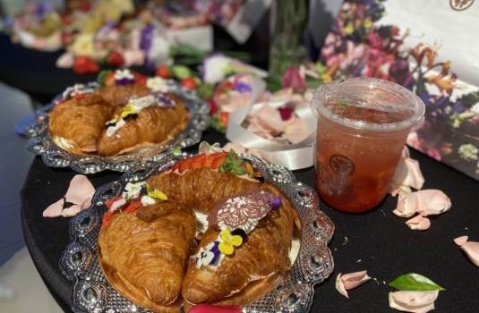 此次推出的三款聯名絶美系可頌,由日本 plantica 花藝大師-木村貴史老師共同發想設計,為了將花與可頌做完美結合,特別選用外觀絢麗漂亮的有機食用花-三色堇,其含有豐富的多酚類物質,其含量據說是同量紅酒或巴西莓的 4 倍。而有別於華麗的外型,木村貴史老師將這三款絶美系可頌分別以日本傳統顏色來命名,分別為「御所染草莓」、「金絲雀檸檬」、「白百合巧克力」。「御所染草莓」:御所染在日本傳統顏色中象徵著淡淡的粉色,紅色與櫻花色的結合,聯想到日本美麗的古都和優雅的貴族文化如同這款產品以草莓果泥與法國鮮奶油熬煮成的草莓奶醬,尾韻滿溢草莓果香,並妝點新鮮草莓品嚐可頌的莓好口感!「金絲雀檸檬」:黃色的幸福鳥 "金絲雀 "自古以來在日本就很受到歡迎,以其外觀和顏色為人們帶來活力和愉快的心情,如同檸檬給人的感覺,以手榨檸檬汁調製成青檬糖霜,外層口感清脆,內層濕潤柔軟,酸甜口感飽滿的檸檬清香令人難忘,精緻的法式蕾絲餅點綴上頭就好像鳥兒的翅膀一樣輕盈,整體看來有如金絲雀扇動翅膀一般。「白百合巧克力」:濃郁如絲緞般口感的巧克力奶醬,搭配花瓣獨有柔軟質地與酥脆可頌交織出多層口感,於頂端點綴香堇花華麗的造型彷如一座迷你花園,其可頌內部填滿著純白巧克力,貌若一朵白色的百合花。