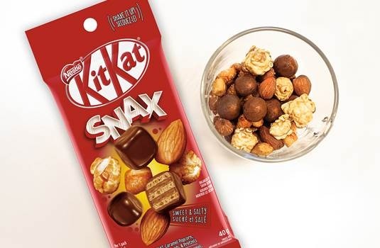 另一款新品「雀巢奇巧KitKat綜合果」,瞄準過年辦年貨、吃零嘴的傳統習慣,推出綜合多種零嘴的隨手包,混搭KitKat巧克力球、焦糖爆米花、椒鹽脆餅及烤杏仁,鹹甜口感一包滿足;隨手包設計讓你獨享、分享都方便。熱賣款「雀巢奇巧KitKat四指包巧克力」的牛奶巧克力威化和醇黑巧克力雙口味也換上金磚造型外衣,勢必再創搶購熱潮。