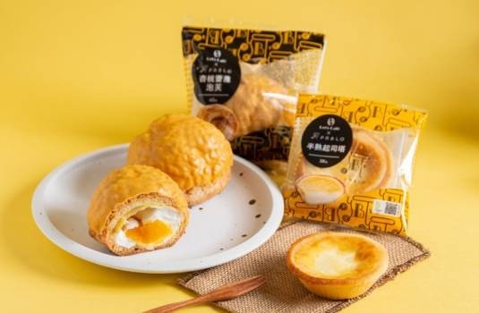 與PABLO聯名,製作出經典美味的商品。使用奶油乳酪、鮮奶油、蛋等調製出口感細密滑口的日式半熟起司。濃郁的起司香氣及滑順口感搭配底層的塔皮,上層再加入蛋液烘烤上色,讓人食用後齒頰留香,更適合搭配茶飲等。(售價38元)