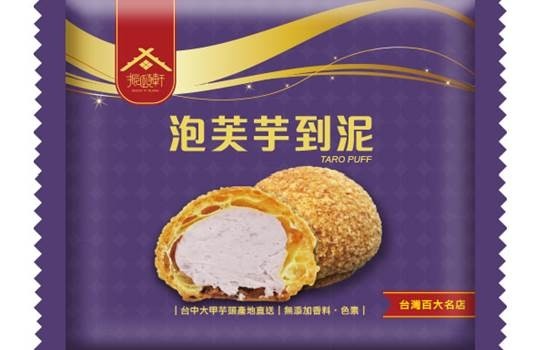 芋頭餡使用台灣在地檳榔心芋頭,芋泥餡拌入紐西蘭鮮奶油,口感滑順。全台上市(不含花東/離島)。