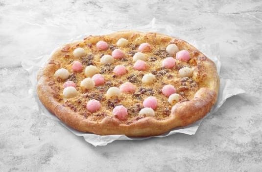 繼2020春天「京都宇治金時比薩」後,必勝客再次攻佔饕客的甜點胃!必勝客「台潮辦桌」第二站端出「花好月圓花生湯圓比薩」,將囍宴必備的甜蜜菜色以比薩樣貌呈現,讓懷舊好滋味多了不同層次!「花好月圓花生湯圓比薩」以清爽不油膩的舊金山手工餅皮為底,鋪上來自苗栗南庄的桂花釀底醬,餡料則以軟糯湯圓作為嚼感擔當,搭配綿密的屏東萬丹紅豆,讓多樣口感同時迸發在口中;再撒滿雲林在地栽培的花生粉,讓桂花釀底醬和花生粉交織出豐富多層次香甜滋味;最後由比薩的靈魂──莫札瑞拉起司連結起所有餡料,超濃郁起司將在地食材的清香與自然甜味完美融合!「花好月圓花生湯圓比薩」限時販售只到4月26日,單點大比薩優惠價只要299元,小比薩優惠價199元,也能以定價搭配外帶買大送大/外送買大送小比薩優惠。