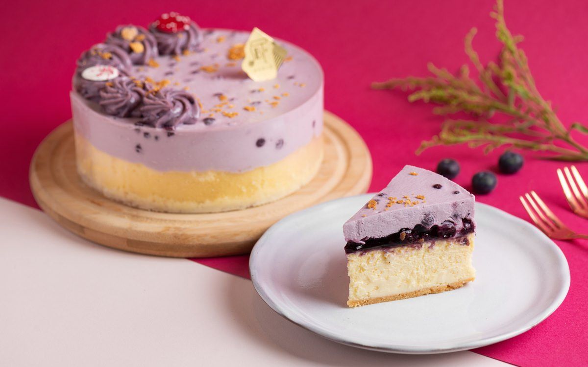 PABLO金牌起司塔首次大變身! PABLO莓好馨情「藍莓慕斯起司塔」,使用精選兩種起司奶酪烘烤而成的PABLO金牌起司塔為基底底層,向上一層層的堆疊,夾層淋上果粒分明、清爽酸甜的愛迪亞ALDIA藍莓果餡,再覆蓋上由藍莓果餡及鮮奶油製成的淡紫色藍莓慕斯,於塔面擠上打碎的藍莓果餡與卡士達醬拌勻的花朵,最後撒上脆片及金粉製成的金箔脆餅點綴,優雅中帶點奢華乍現。淡雅的外觀、酸甜的內餡,底層『金牌起司塔』有著重乳酪濃郁起司香、精緻綿密、香滑順口的口感,上層則帶有清爽果酸香、顆粒口感的藍莓慕斯,在嘴裡散開多重滋味,是一種甜蜜卻不膩口的精采結合。