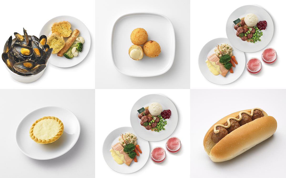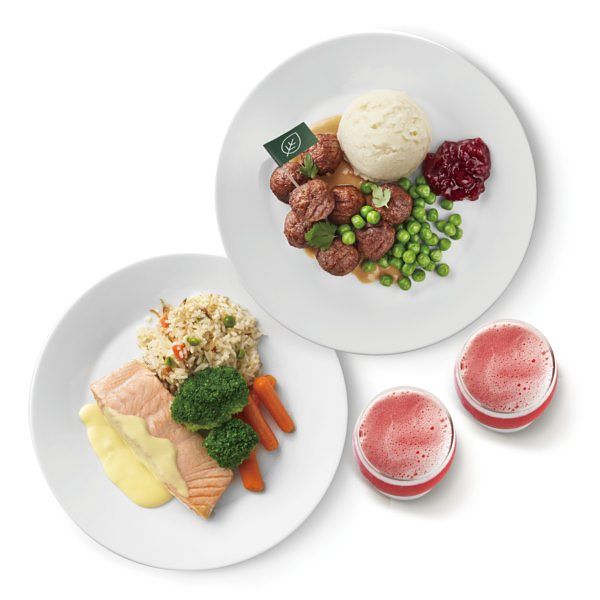 內含植物素肉丸、鮭魚菲力和風炒飯及冷飲2杯。「鮭魚菲力和風炒飯」採用ASC認證鮭魚,搭配荷蘭醬,凸顯魚肉鮮甜。