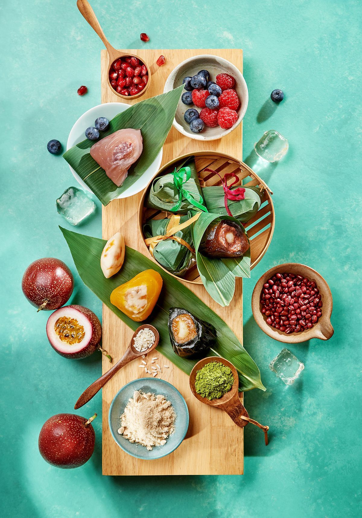 「彩虹座」今年研發出三款果香清爽風味的新Q粽:「抹茶香柚麻糬、芒果百香豆沙麻糬、黑糖紅豆麻糬」,冰涼Q粽多層次的口感,外型小巧輕盈、無負擔。