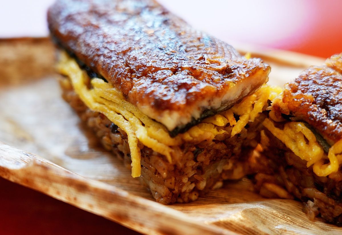 小倉屋推出的蒲燒鰻魚粽也是市面少見正宗的「鰻魚粽」,最經典費工炙烤入魂的鰻魚,過程還需仔細混合餡料,一層米飯餡料、一層金黃蛋絲、再一層米飯餡料,做工繁複而且完全純手工。耗時且堅持日本鰻魚粽的工法,限量880組,棕子的外型如福袋,讓過節吃粽的同時又多一份祝福。