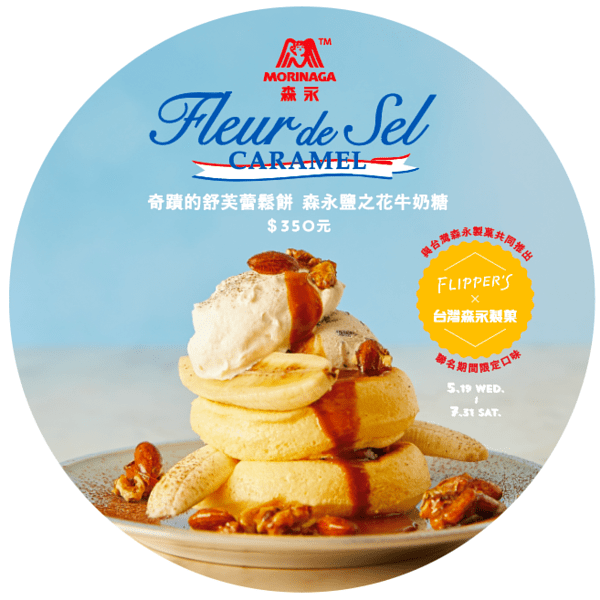 此次的期間限定將帶來牛奶糖的重磅聯名!不同於過去牛奶糖的童趣印象,FLIPPER‘S 奇蹟的舒芙蕾鬆餅「森永鹽之花牛奶糖」與台灣森永製菓以近期新發售的森永法國鹽之花牛奶糖發想,共同打造最優雅的大人系法國鹽之花牛奶糖限定口味,經典的牛奶糖香氣加乘上法國鹽之花將甜度降低並且以微苦的鹽之花焦糖北海道鮮奶油為主軸,搭配上香蕉切片與黑色餅乾牛奶冰淇淋呈現充滿層次的口感讓童年的美好滋味更增添了一份優雅風情。