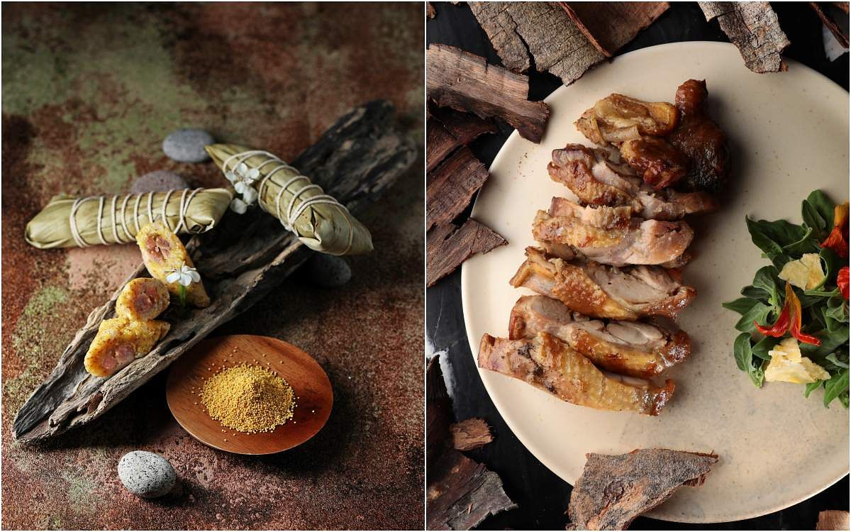 紅藜豬肉小米粽 (90公克X2顆,180元/包)、相思木煙燻雞腿排 (280公克/包,320元/包)
