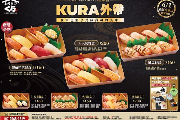 除了松江南京店6月1日開始販售外,全台藏壽司門市從6月8日開始陸續推出KURA外帶服務,征服饕客味蕾!6月8日由百貨商場門市開始販售:林口三井OUTLET、永和比漾、微風松高、新莊宏匯、板橋中山遠百、信義ATT、大直ATT、宜蘭新月、中壢站前、桃園春日路、中壢大江、新竹巨城、廣三SOGO、文心秀泰、台中港三井OUTLET、豐原太平洋、台南FOCUS、高雄漢神巨蛋、高雄夢時代、高雄漢神本館、高雄草衙道,其他門市販售時間則於藏壽司粉絲專頁公告。各位壽司迷們趕緊記下日期,藏壽司KURA外帶美食來陪伴消費者一同度過疫情時刻。