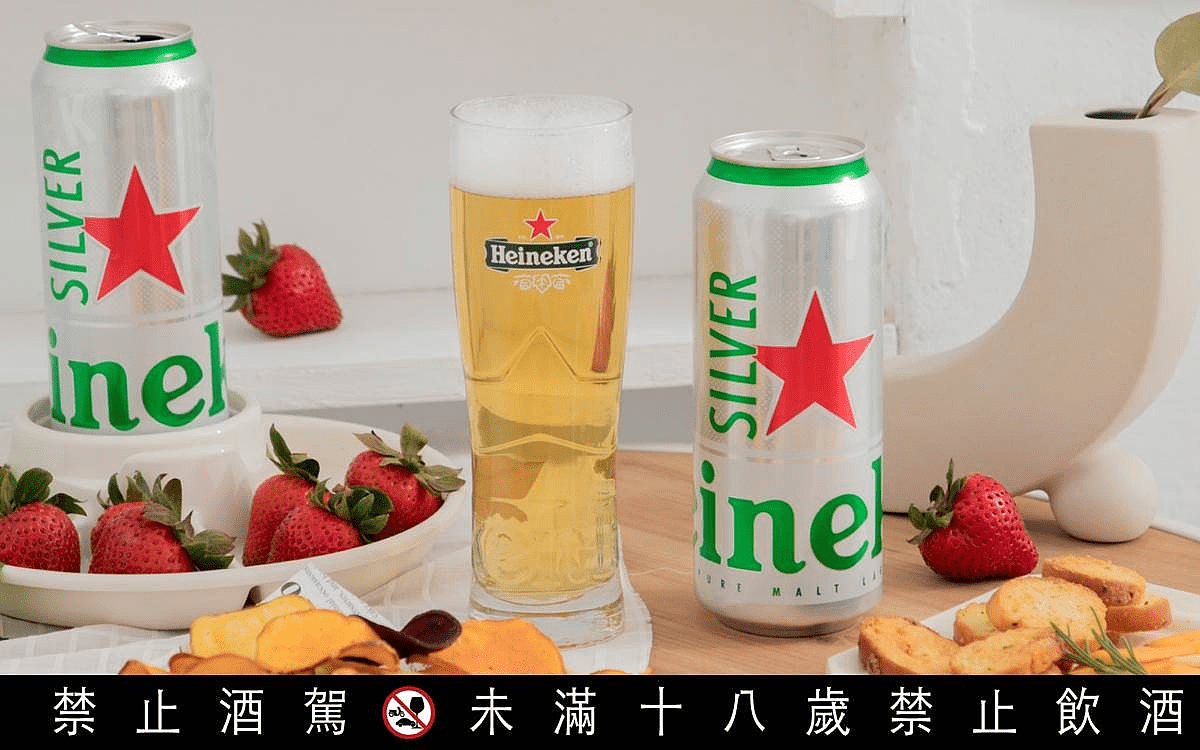 海尼根Silver星銀啤酒的外包裝改以銀色潮感瓶身,保留海尼根經典的紅星標誌,「星銀」色調更加襯托出經典元素與時尚搭配的碰撞,以創新視覺印象為品牌注入新活力,讓你在家也可以很潮!