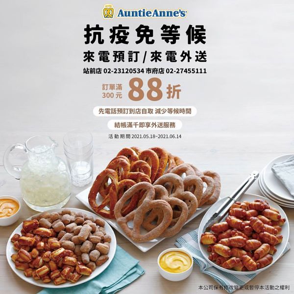 ● 地點:台北市中正區忠孝西路一段66號1樓Auntie Anne’s 專櫃